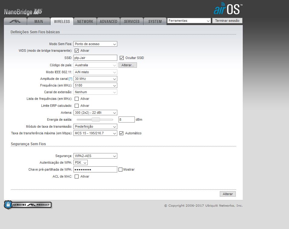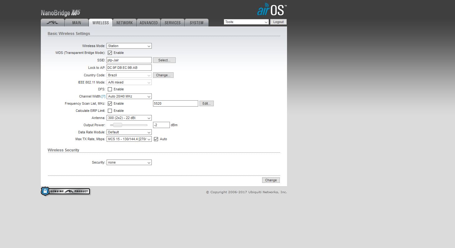 Ja tentei trocar os canais, alterar a frequência de 40/30/20/10 Mhz, desativar airmax, tirar senha (por sinal esta sem agora), troquei as fontes de energia.