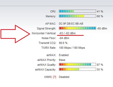 1- subiria a potencia do radio ate conseguir um sinal de -55 ja que pelo visto é possivel se der para ficar em -50 melhor pois com piso de ruido em -90 teria um SNR de 35