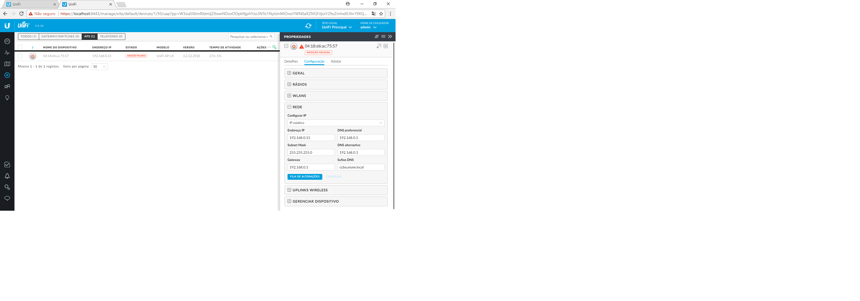 Restei tanto o Unifi como o controler como eu já tenho o Mac do Unifi e sempre pega o IP 192.168.0.15 e esta pingando.