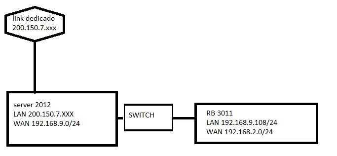 O Windows server 2012 recebe o link dedicado e após ele, esta a RB. Até ai sem problemas; eu acesso o server para acessar a rb, mas, mesmo dentro do servidor, nao consigo acessar as antenas dos clientes! Aguem pode me ajudar com esse redirecionamento?