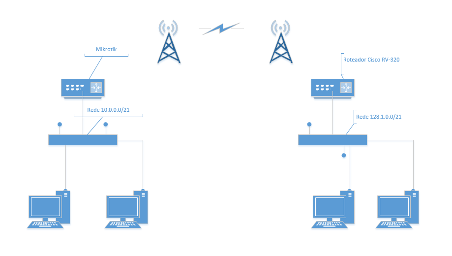 O problema é que preciso que a rede 128 acesse também os computadores da rede 10, já efetuei todos os roteamentos, mas quando a rota da rede 128.1.0.0 bate no ip 128.1.0.253, configurado na porta do mikrotik da rede 10, daí em diante não passa. Tem algo que possa fazer, sem precisar criar uma VPN entre o roteador Cisco e o Mikrotik?