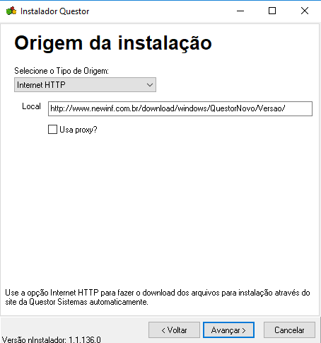 Venho até vocês pedir uma ajuda, estou com um cliente que não consegue fazer download de um arquivo que está no link http://www.newinf.com.br/download/wi...orNovo/Versao/ esse arquivo não pode ser acessado via navegador, somente pelo programa Questor que é um programa que nosso cliente utiliza para gerenciar sua empresa, vou mandar um print do programa como que funciona: