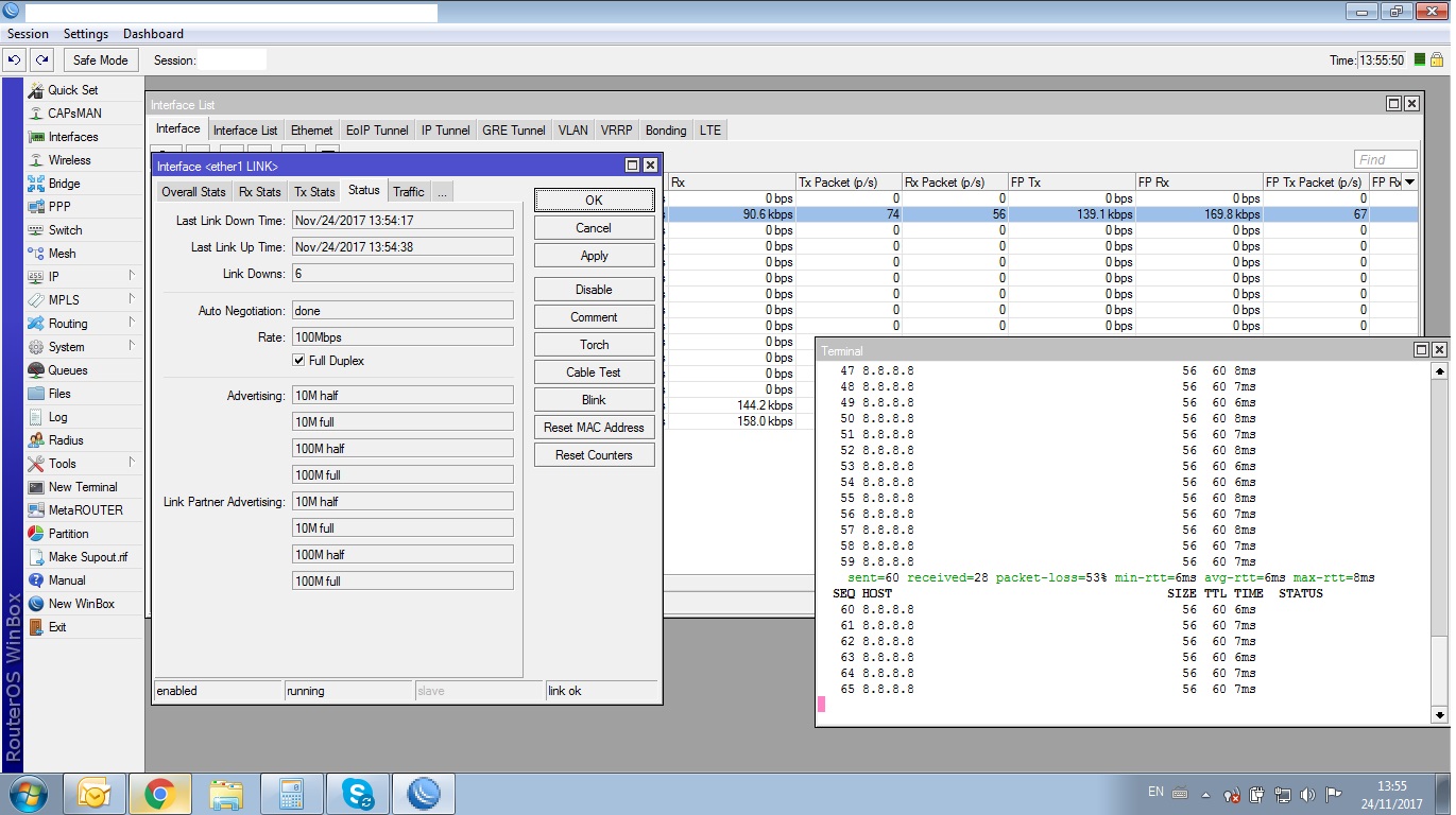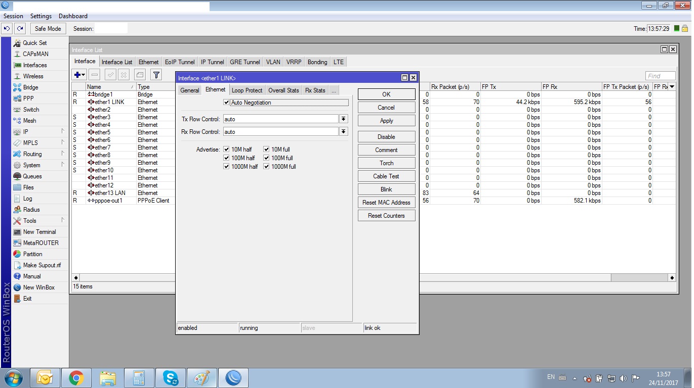 Tenho uma RB1100Ah X2 com um link vivo fibra com 300M em um roteador mitrastar gpt-2541gnac-gv, configuração básica para receber e transmitir, mesmo com o cabo de rede plugado direto na lan de saída da rb não passa mais que 100M, com o cabo de rede plugado direto no aparelho da vivo o teste de velocidade da 300M, sera que podem me ajudar, OBS.: Hoje o roteador esta em bridge e a rb disca pppoe.