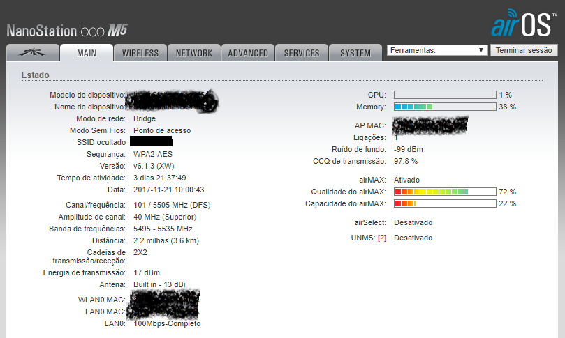 Vejo que a taxa de recepção/transmissão oscila muito com ou sem airmax, será que é isso que faz com que tenha tão pouco velocidade, menos da metade do link?