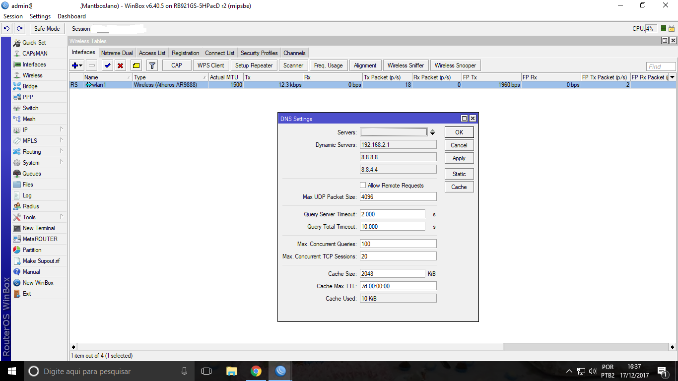 Percebi que no dynamic servers está o meu gateway junto com outros dns.