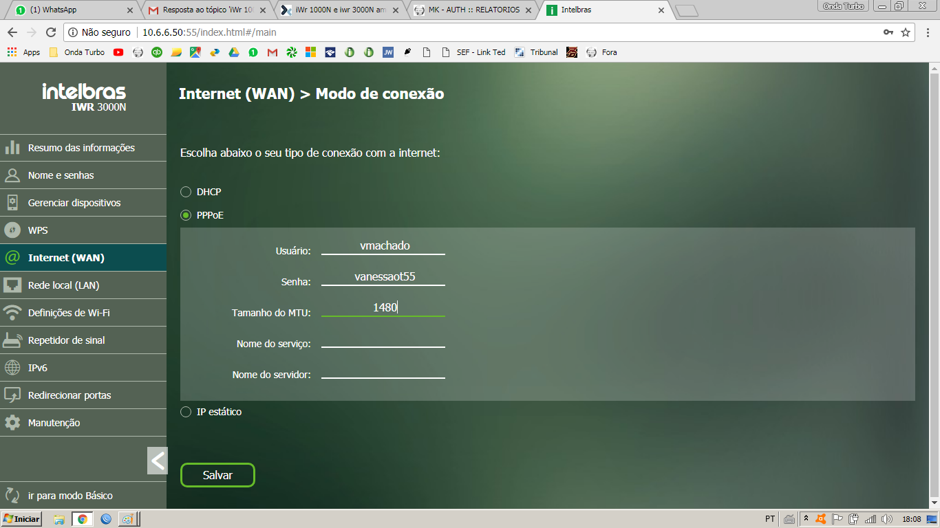 Coloco o Intelbras da panico de 5 em 5 minutos. Falei com o suporte me mandaram uma atualização que não funcionou também, e o cliente não quer comprar outro roteador.