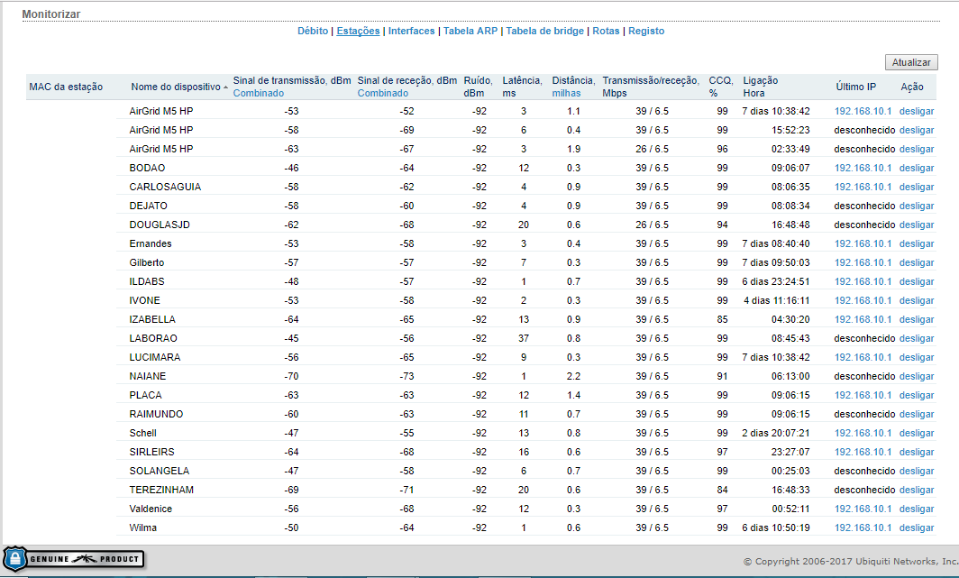 Pra um p*ta sinal desse chegar a míseros -69dBm num cliente (O 2º da lista) a apenas 600m, usando um Airgrid cujo MENOR a venda é de 22dBi, tem que ter algo MUITO errado nessa visada!