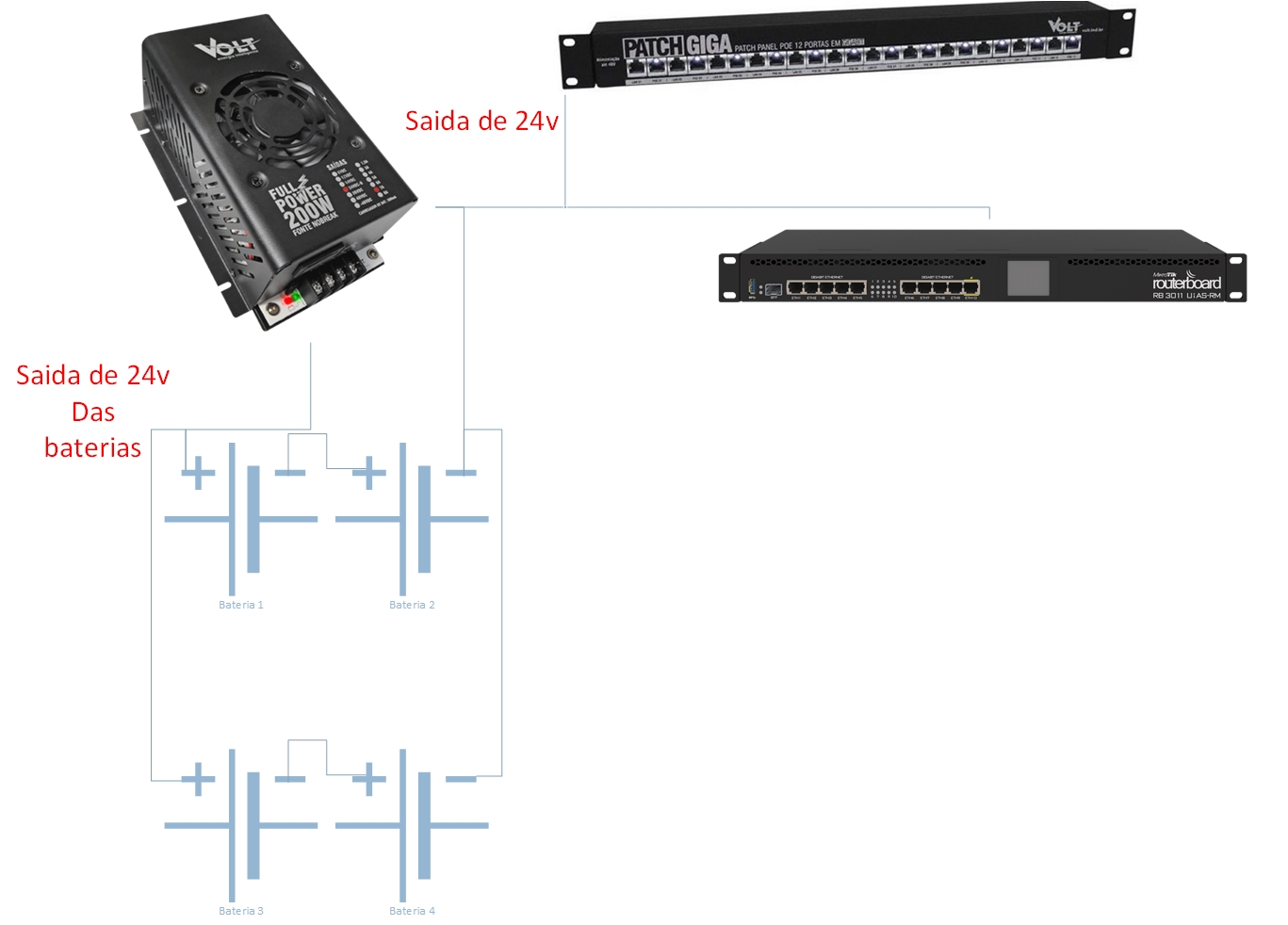 Como podem ver na imagem abaixo, estou querendo liga minha RB na fonte no-break junto com o patch panel. Minha duvida e se posso utilizar a saída da fonte que e 24v que liga o patch penel e fazer uma segunda saída ainda nesse cabo para liga uma RB3011.