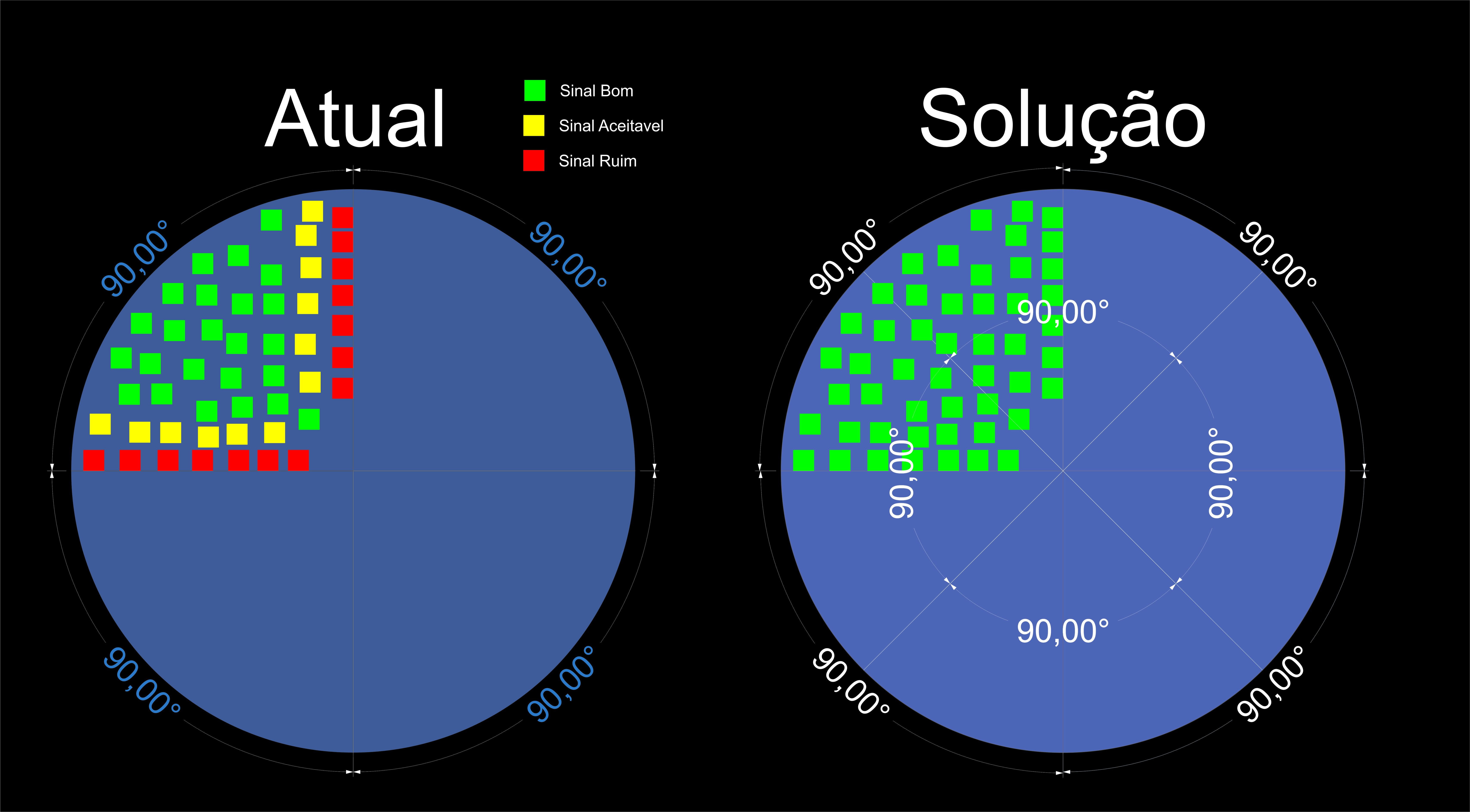 Na imagens do lado da atual tem uma solução que estava pesando e estou com duvidas se e viável eu fazer assim. Ja tenho 4 antenas de 90º grau, e queria colocar mais 4 antenas abaixo, para pega os clientes com o sinal ruim.