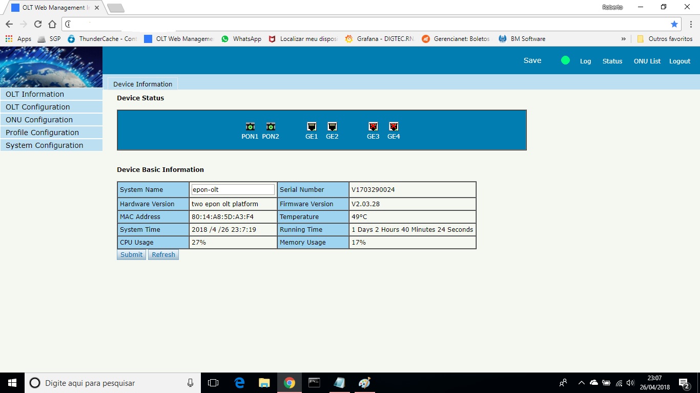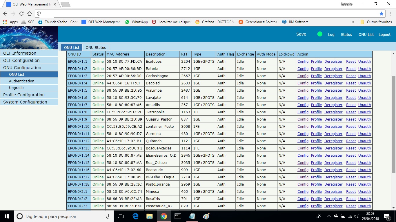 3° Esse negocio de subir 1 ONU por PON esta parecendo configuração errada.