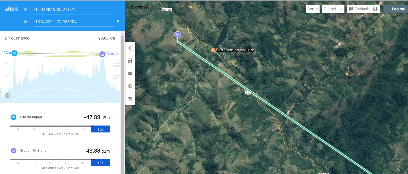temos um de 69km, perfil sem obstrução, porem fading direto afeta, nao vale a pena, quebra em 2 enlace