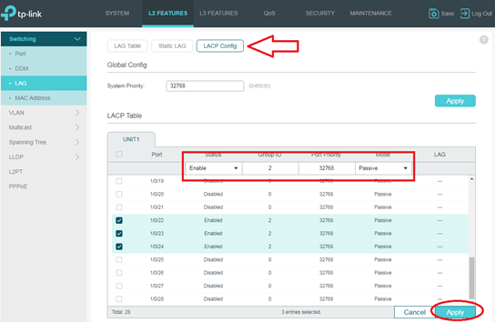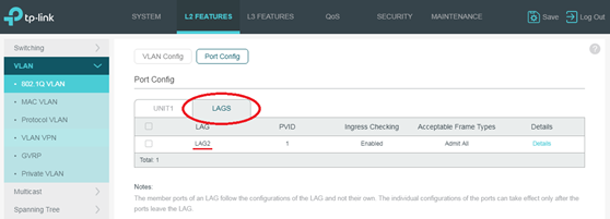 Link Aggregation (LACP) TP-Link TL-SL2218