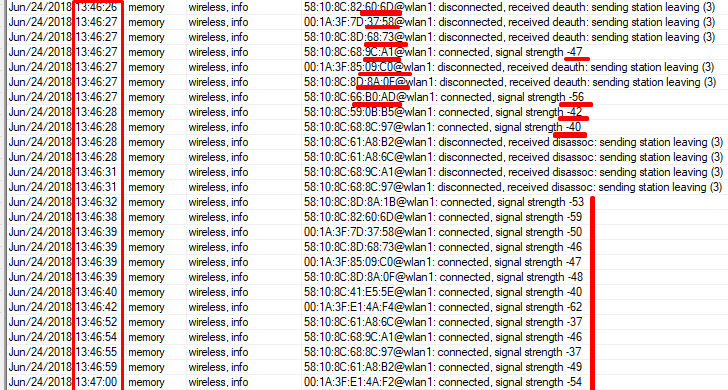 de 11 dias para ca,todos meus mikrotiks estao simplesmente dando timeout nos clientes!simplesmente do nada,ele derruba uma classe de clientes e reconecta novamente acusando no log "station leaveng",e isso causa quedas constantes no uso dos usuarios!