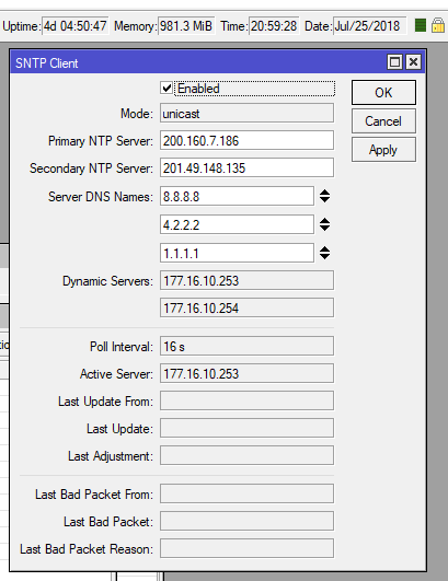 mesmo setando o servidor de hora do NTP brasil o mikrotik continua com a hora errada, oque mais posso fazer
