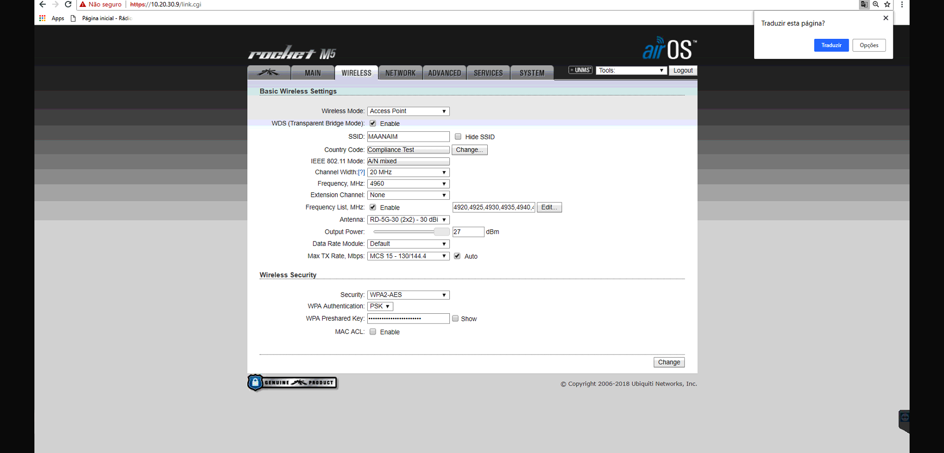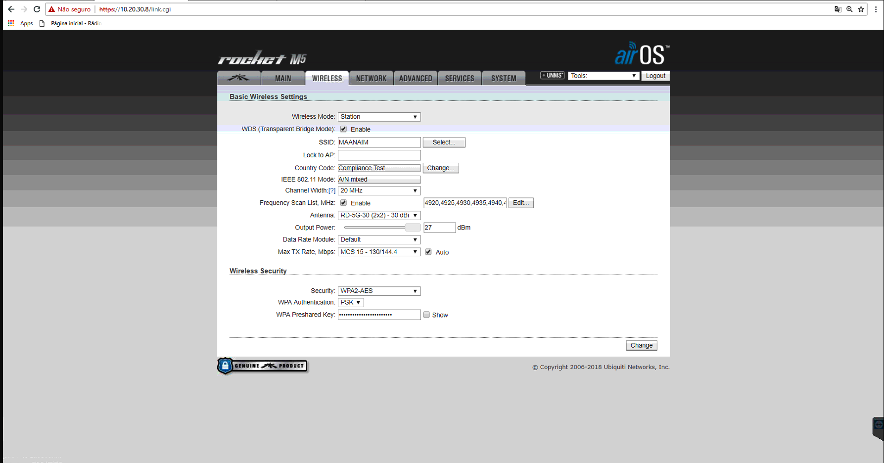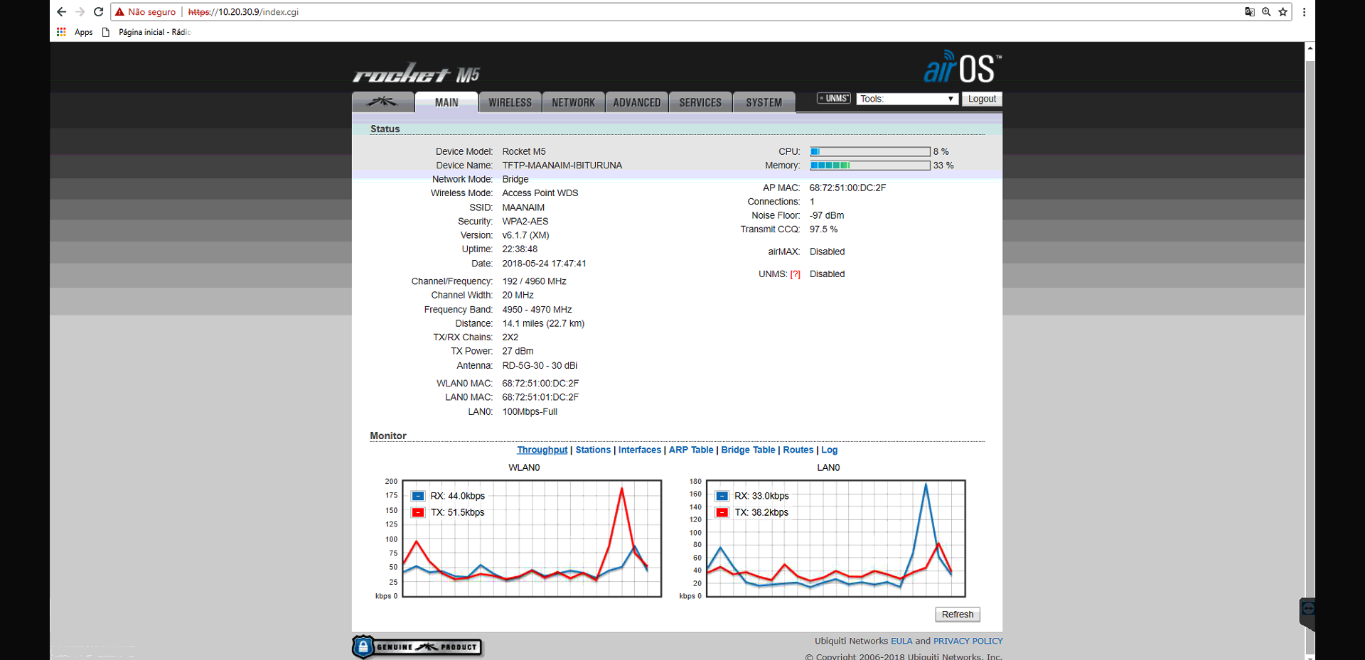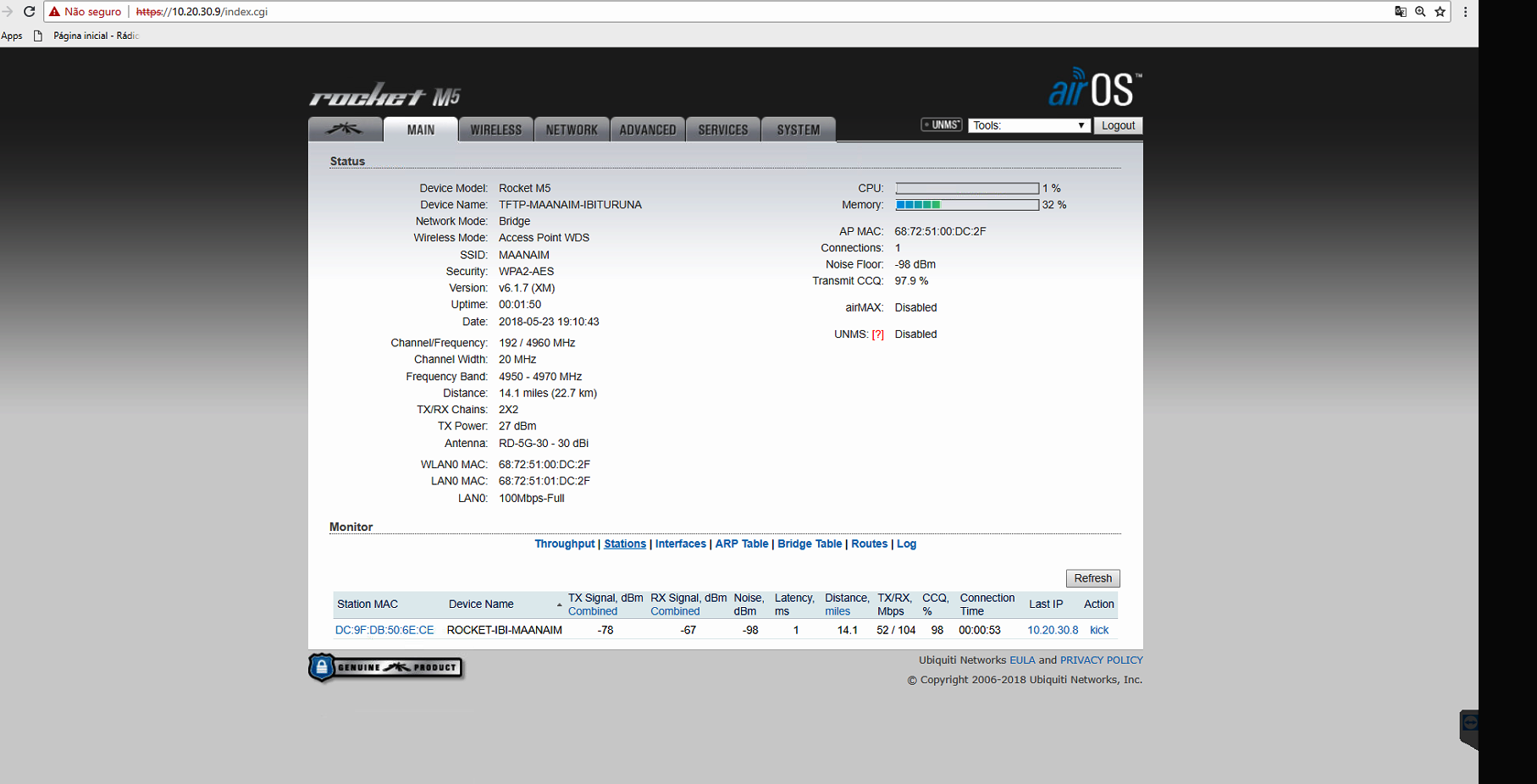 Poste as prints das abas das configurações wireless de ambos os rádios e da aba STATIONs do AP.