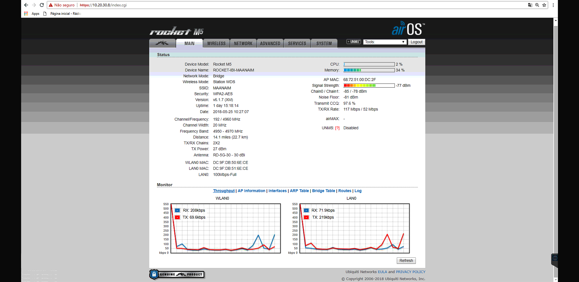 Porém, agora quando eu faço um test de velocidade, o rádio que está em como AP agora, cai quando é feito o teste de upload.