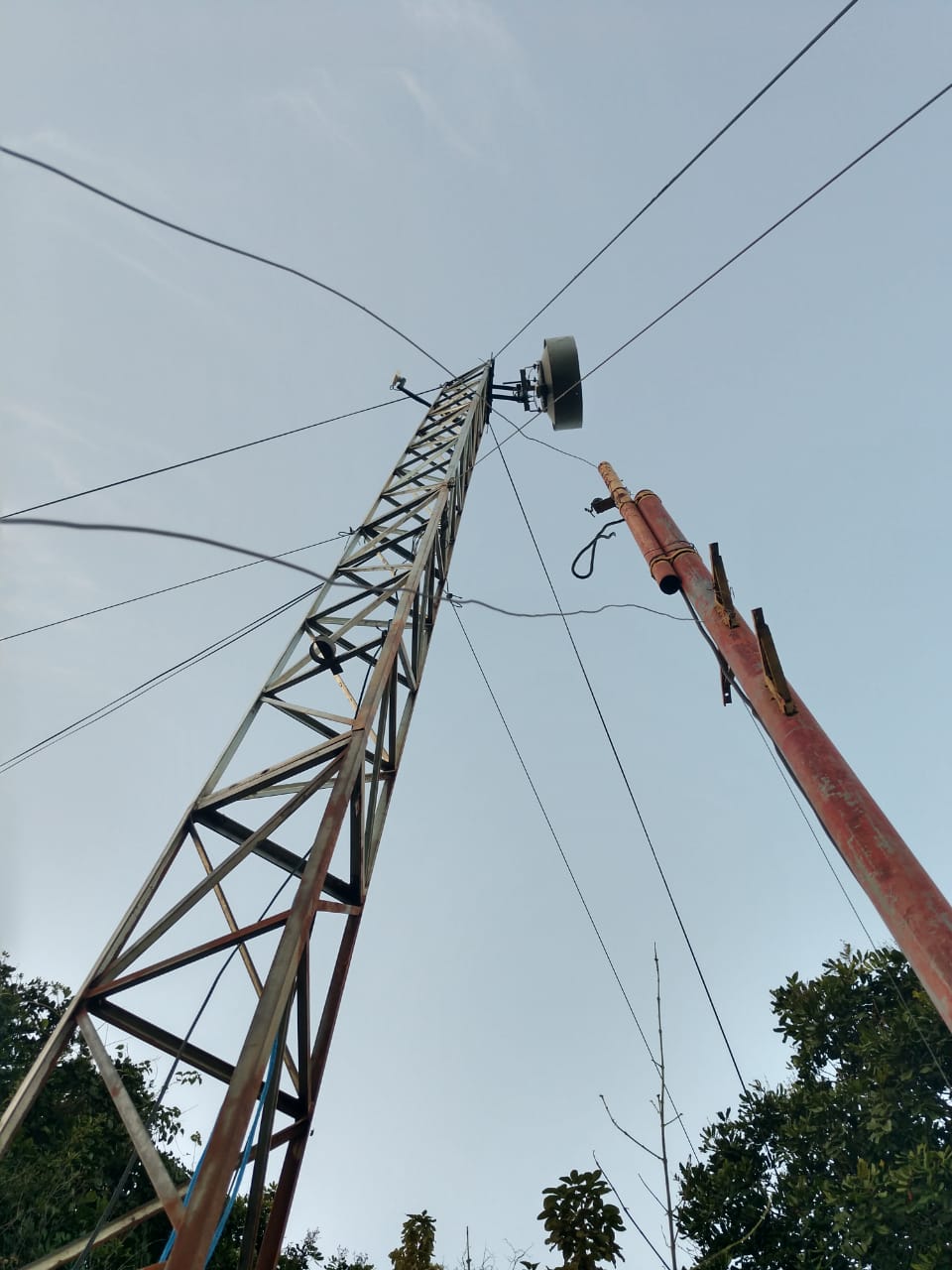 Olha. Me parece que é só questão de alinhamento e frequência. Vai dar um pouco de trabalho pois terá que realinhar os dois lados novamente, pois o que me parece houve uma mudança de posição na antena desta torre da foto (estava no mastro abaixo?).