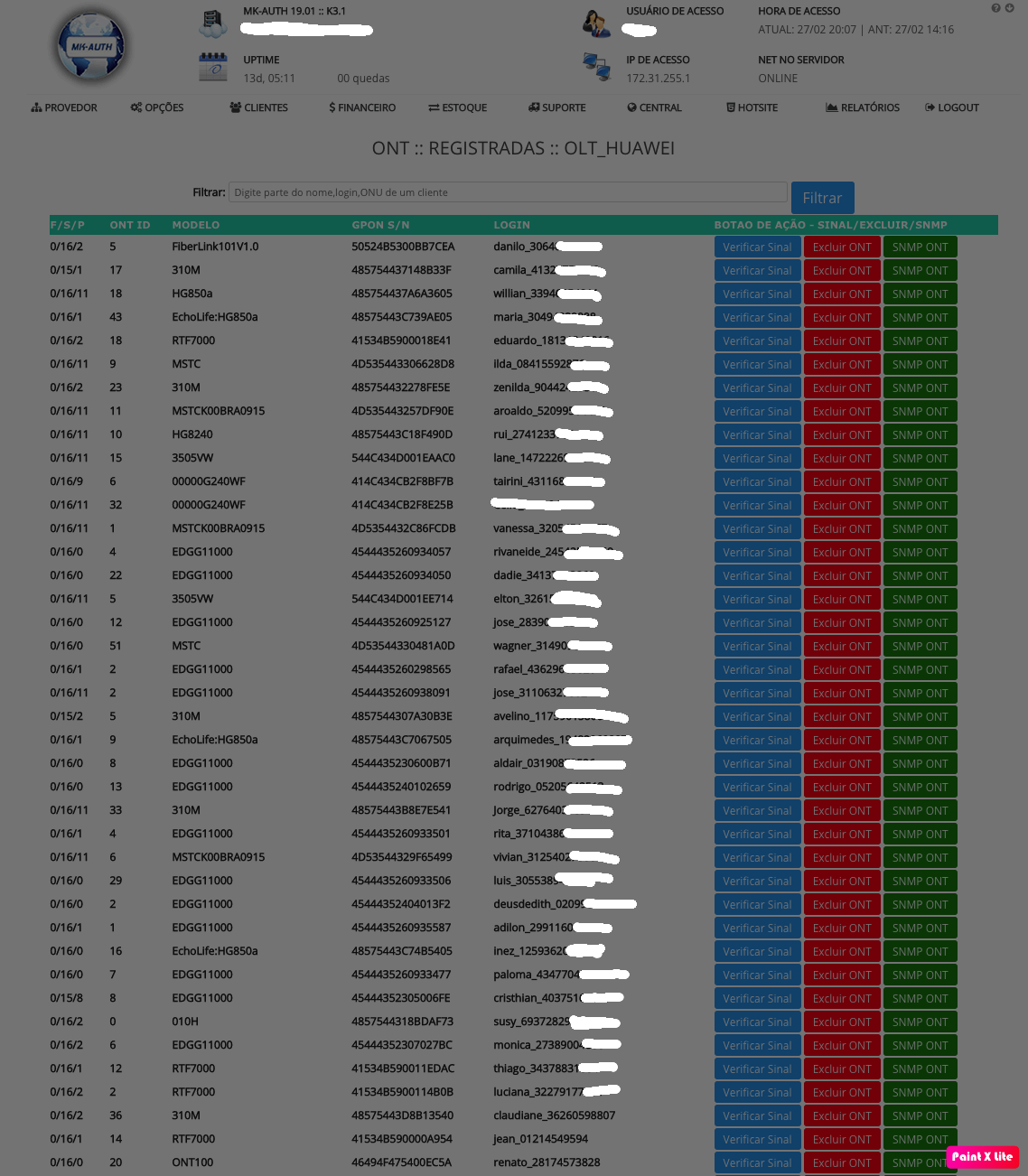 Ferramenta de Gerencia de Onu's/ONT's Integrada ao MK-AUTH
