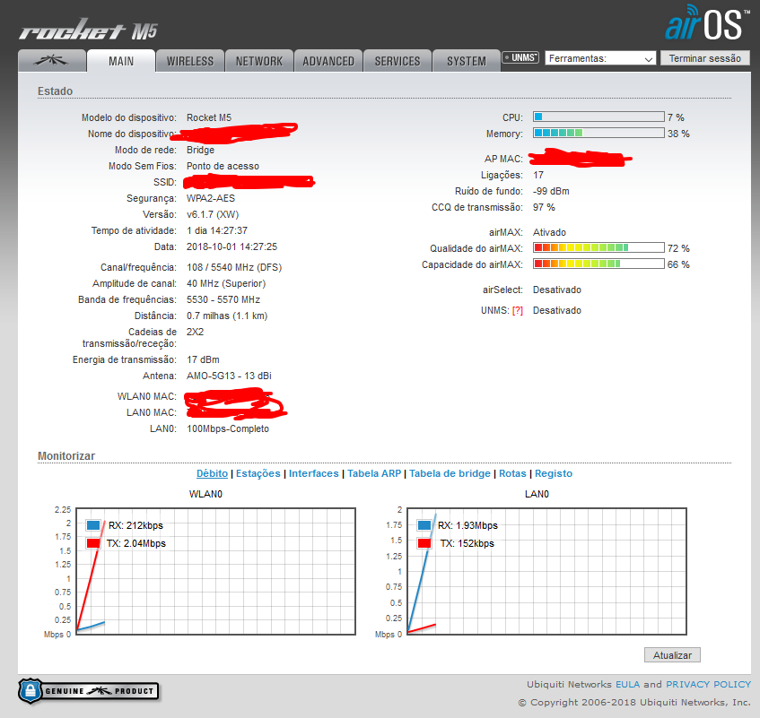 Rocket M5 + AMO5G13 sinal pior que Omnitik é normal?