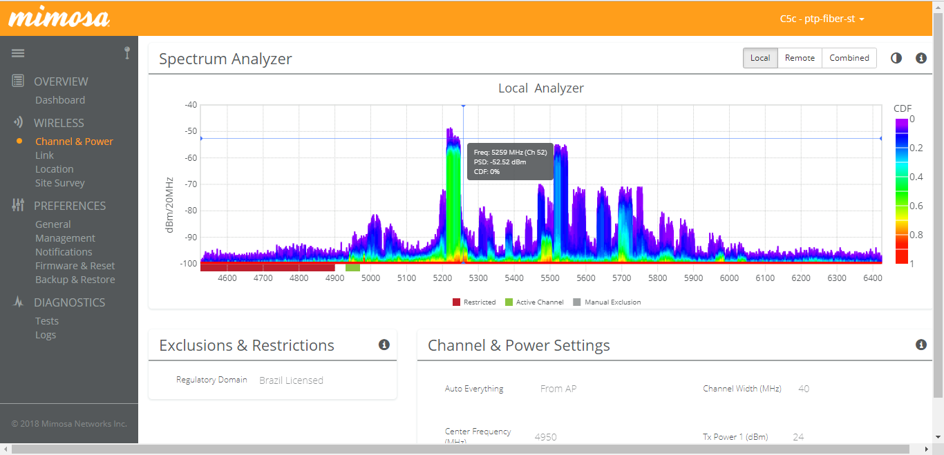Ali mostra a poluição de cada canal . Procure usar onde a linha está mais baixa .