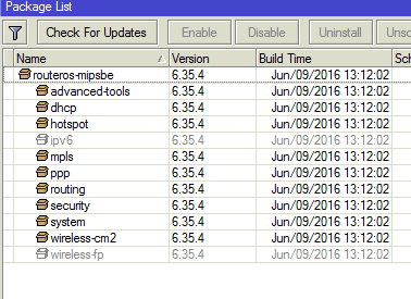 Quando você vai em System, Package, Check For Updates o RouterOS encontra atualização disponível ou aparece algum erro?