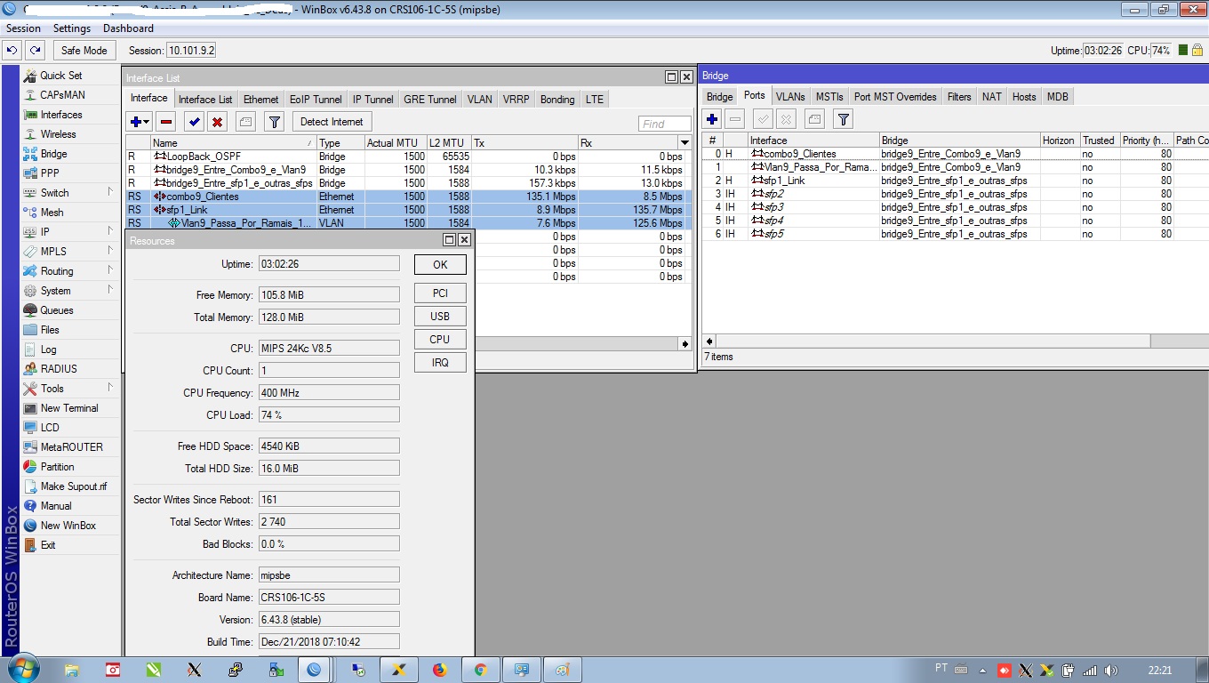 então meu amigo, tem uma versão dessa crs que habilita uma função, que faz parar de usar o processamento para o switch, a minha hoje trabalha com trafego de 300mb em 18% de processamento, mais tarde te mostro qual a versão e a função para habilitar blz me chama no whats 47 988153919