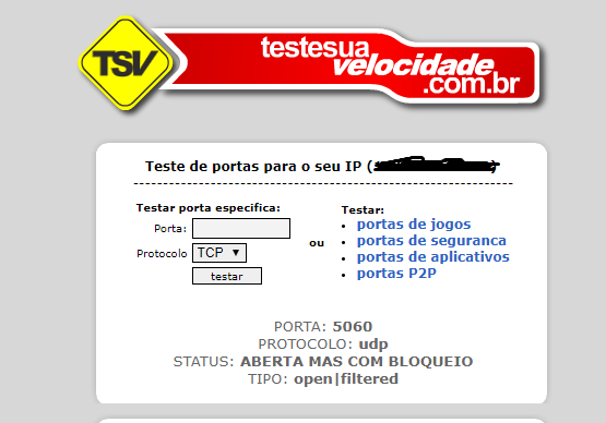 tenho um nat direcionando para a porta 5060 UDP no meu mikrotik que uso numa central pabx intelbras para acesso de ramal externo, num teste me da um retorno que a porta esta aberta mas bloqueada.Anexo 69378