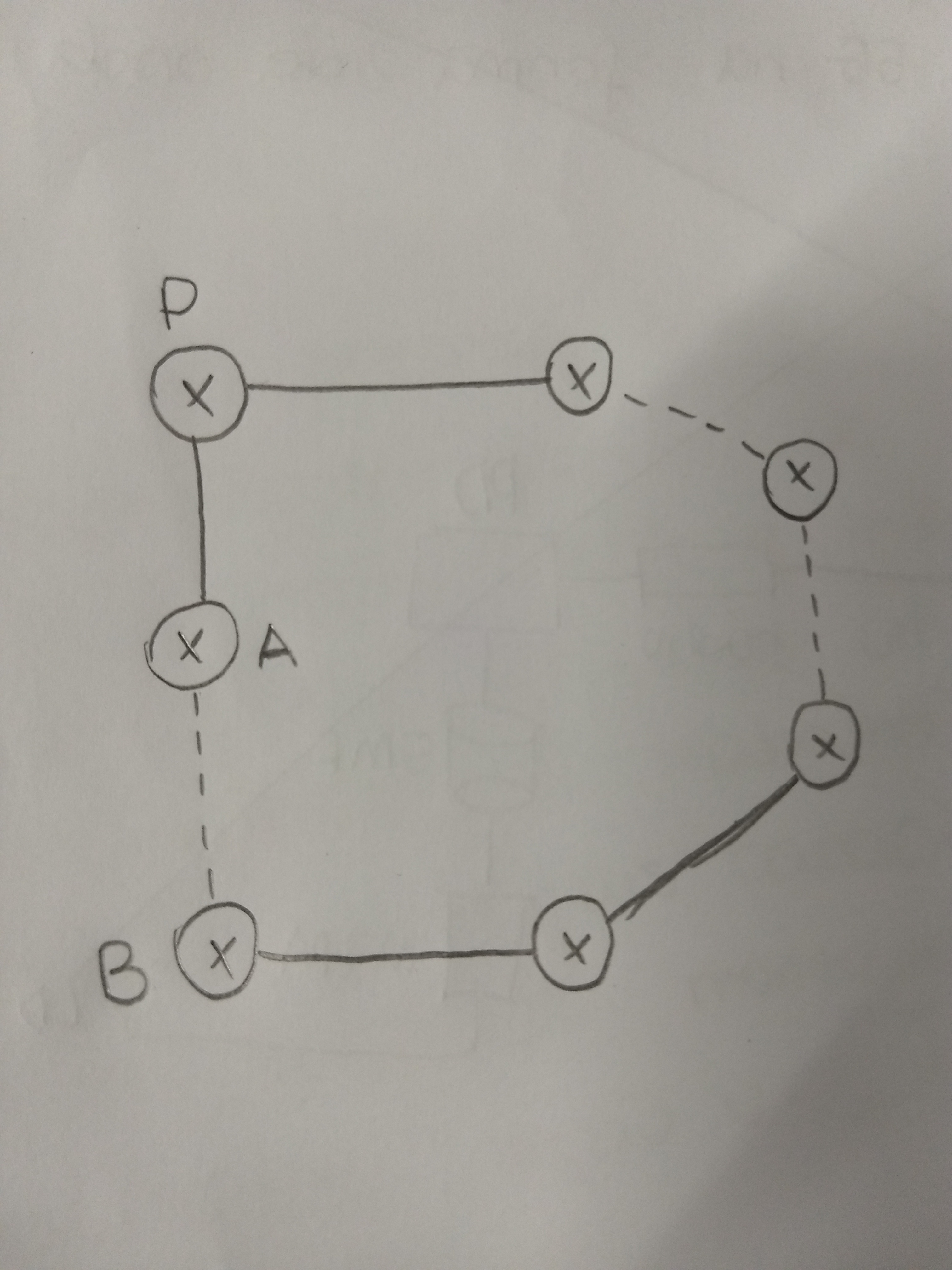 Estou com a seguinte situação, tenho um cliente no roteador B, e quero fechar BGP até meu roteador P, que é meu principal, no entanto, tenho dois caminhos para chegar até meu roteador principal.