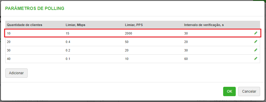 Nota: para o modo PTP será usada apenas a primeira regra, que mostra que o polling começará quando a estação atingir um throughput agregado de 15Mbps ou 2000PPS.