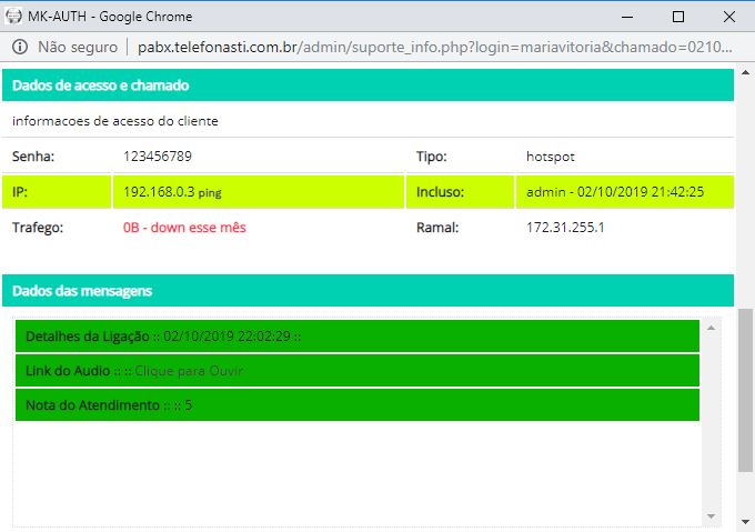 Caso queiram um teste mais especifico podemos logar uma conta e um ramal conectando direto em seu MK-Auth.