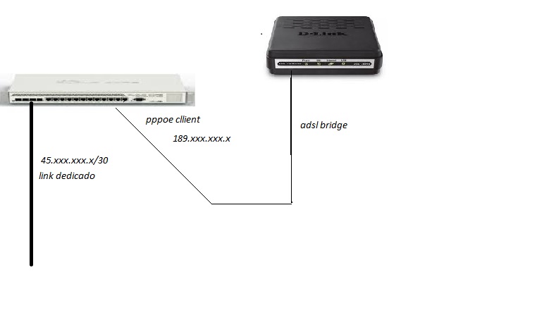 Tenho link dedicado sendo a rota por onde meus clientes saem, e tenho um pppoe client de um adsl para acesso externo se meu link dedicado para, porem se meu link para, não consigo acesso pelo adsl, hora que meu link volta o adsl tambem volta.