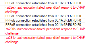 Verifica a autenticação do seu servidor pppoe, use mschap2/mschap1. qual roteador usa na rede ?