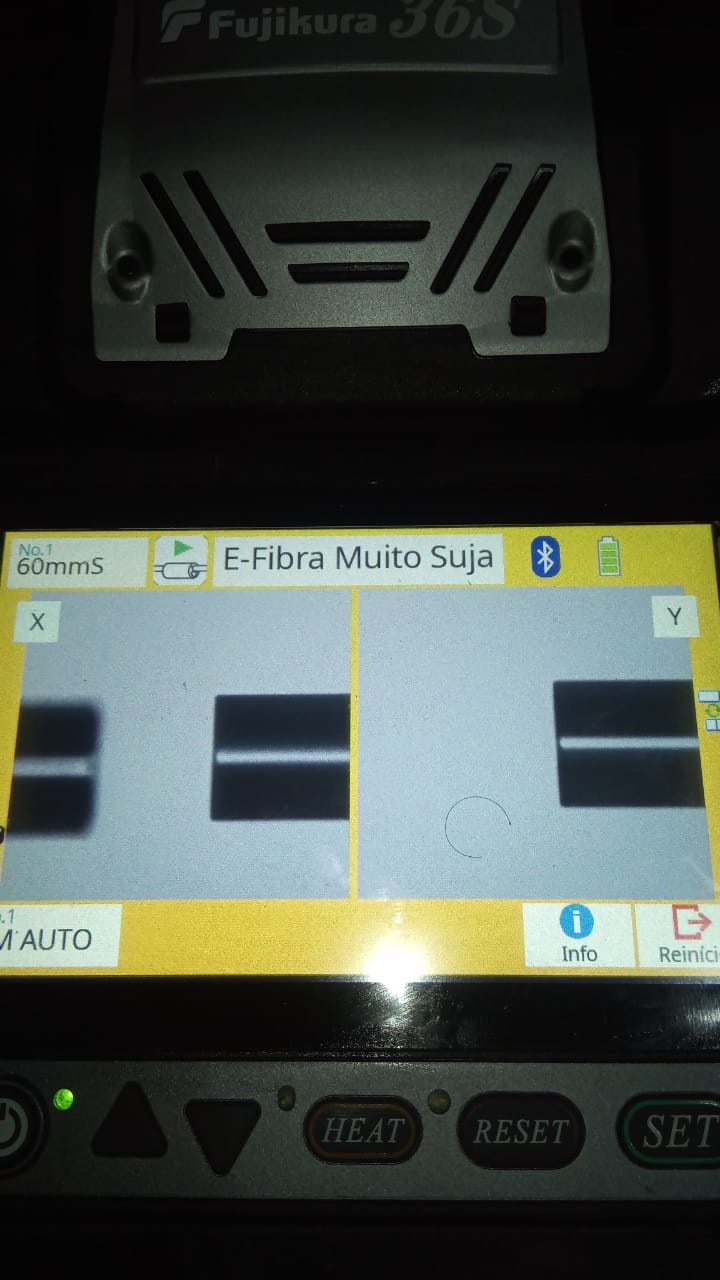 Estamos com um problema na fujikura 36S, apenas o lado esquerdo apresenta problema de fibra suja.