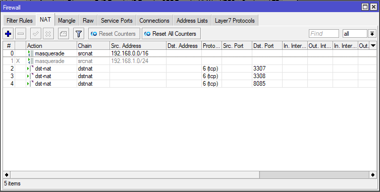No Firewal >> NAT eu tenho apenas um masquerade>srcnat>192.168.0.0/16.