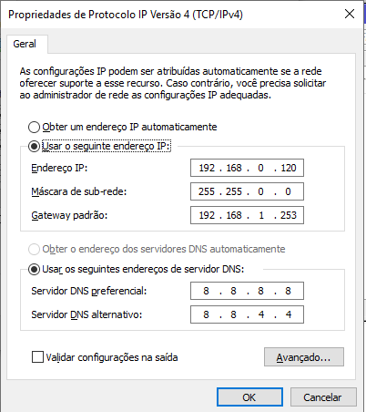 Com a configuração de rede abaixo no PC eu acesso AS DUAS REDES, PINGO nas duas e abro os dois servidores (\\192.168.0.254) e (\\192.168.1.254)