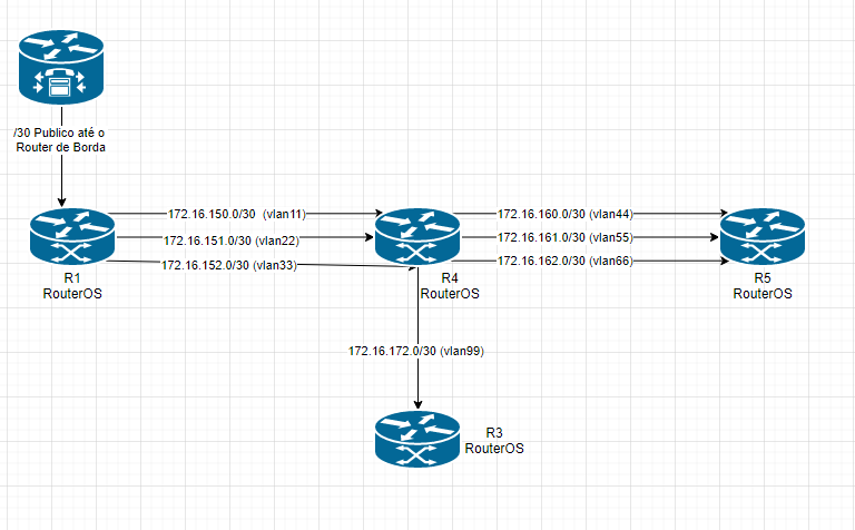 Minha dúvida e se na topologia da imagem em anexo, preciso separar em duas "areas" nas configurações do OSPF.