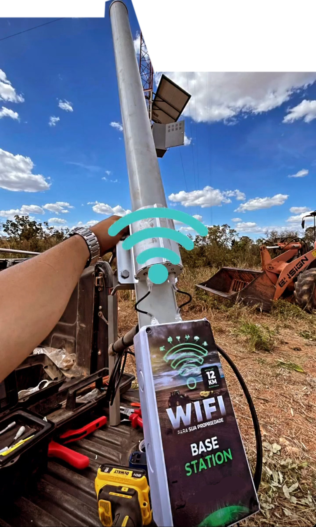 Mas a princípio qualquer Bullet ou Groove na base permite plugar em antena 12dBi boa, nos veículos é que precisaria separar, canal 1 na base e no roteador interno canal 10 digamos, até dá pra criar AP e cliente numas interfaces mas fica mais caro que separado, talvez por isso o uso de caixa plástica genérica. Uma RB912UAG com slot mini-pcie dá pra plugar placa e ter então 2 interfaces, fica mais caro que comprar hAP Mini ou Lite pra usar como placa avulsa dentro da caixa hermética, e plugar num Groove direto na antena. Também tem hoje a RBM33 com 2 slots mini-pcie, mas ela e 2 cartões também fica mais caro. E que dá pra usar placa de roteador genérico, digamos um TP-link barato, isso dá. Na verdade até dá pra usar uma dessas placas pra ligar na omni, mas a qualidade não vai ser a mesma, não terá os 22-24dBm de outras soluções (As vezes tem é 14dBm de potência, mesmo em data rate baixo). Mas pra fazenda nem tão grande dá pra oferecer essa opção, um par de TPLink WR720n, troca firmware pra ter modo cliente, com omni 9dBi em cima do teto deve dar seus 4km de alcance com data rate baixo (Se tiver visada).