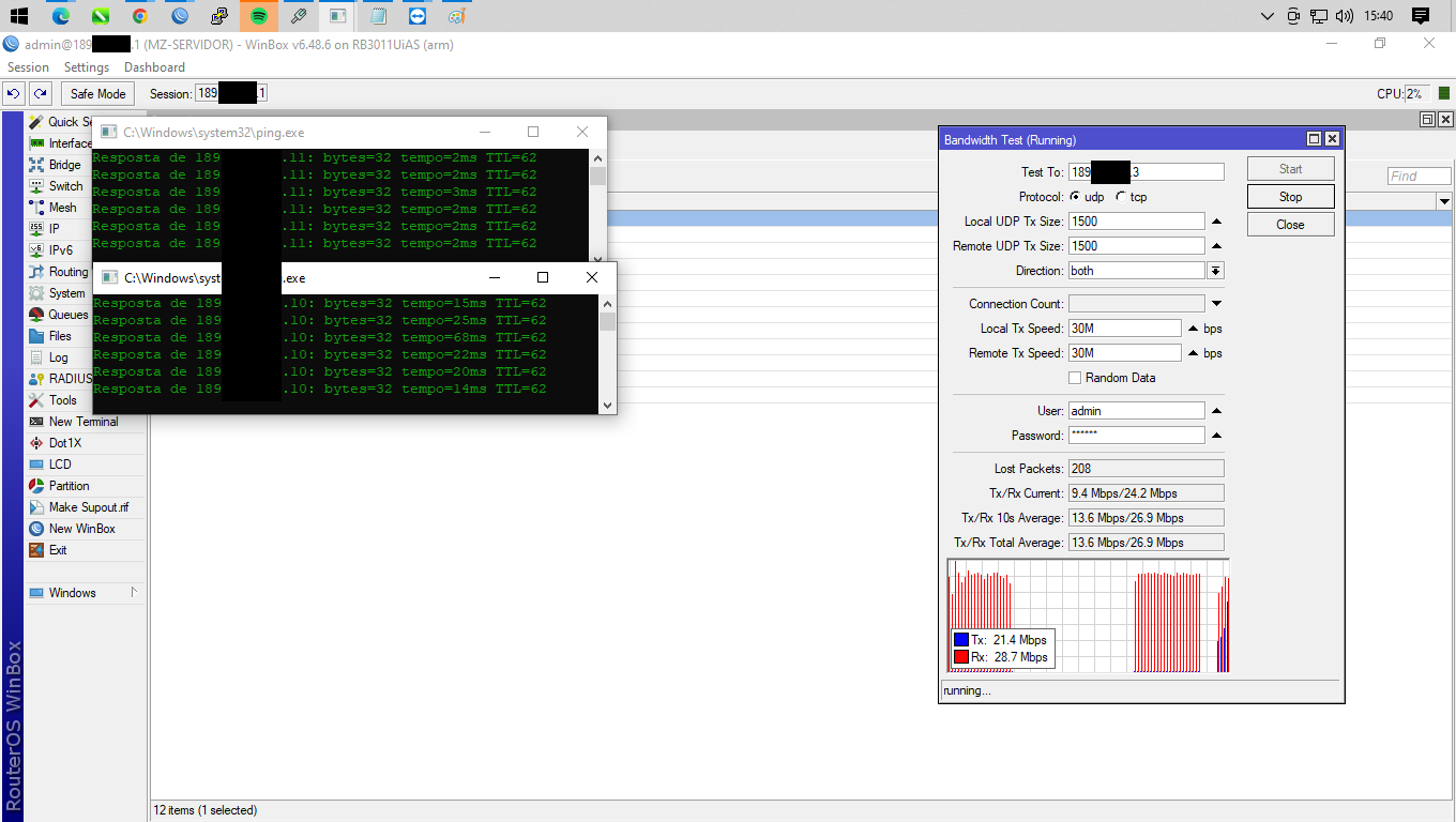 Quando faço o Brandwidth teste da minha casa para 189.xx.xxx.2, a hora q chega em uns 15mb o ping começa a falhar até desconectar e depois volta ao normal em questão de segundos.