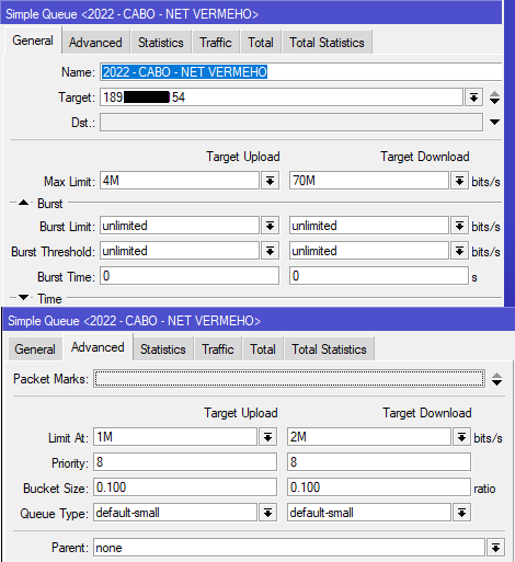 Outra coisa, na Queeue, cliente com 5M, bate 7M de consumo, os de 10 as vezes bate 15 MB, mas bem rápido. deve ser alguma regra mesmo