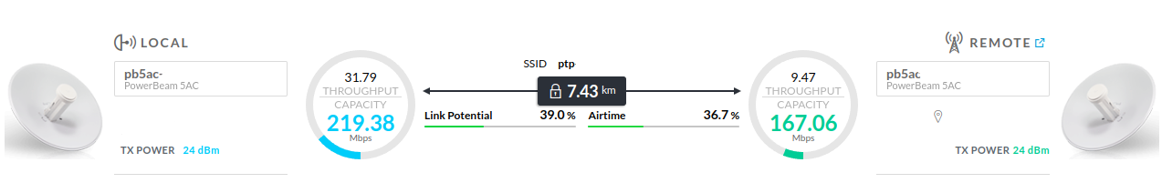 Na versão atual do airOS só consigo ver o Troughput/Capacity do RX