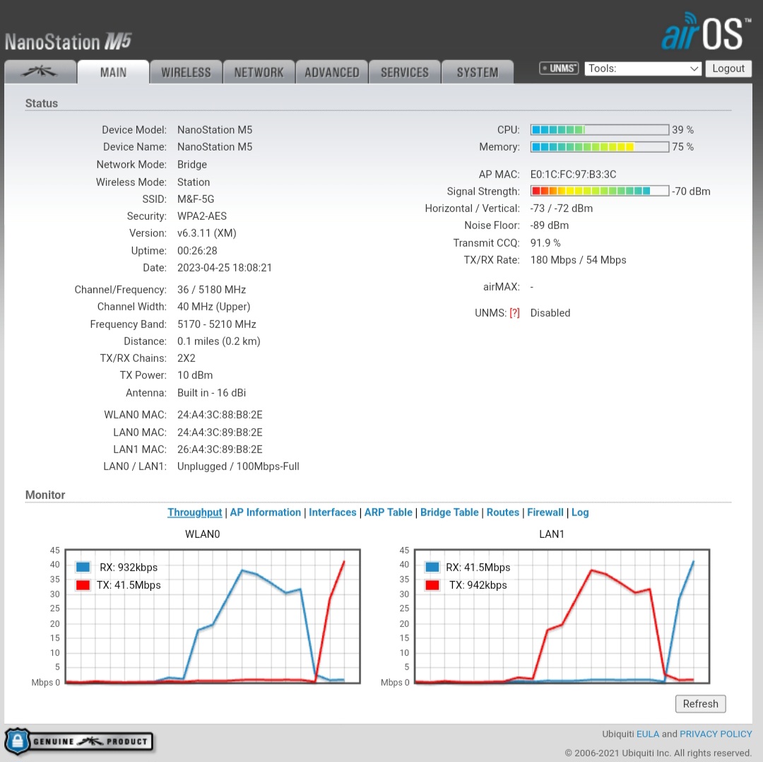 NanoStation M5 com rx zerado
