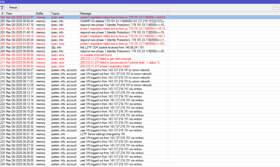 Ola pessoal. Hoje o dia amanheceu e fui acessar o meu rb remotamente e no log estava essas coisas ai como podemos ver na foto, alguem sabe dizer oque pode ser?