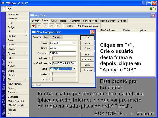 LEMBRANDO EU SOU NOOB AINDA EM MICKOTIK, E AGRADEÇO MUITO O COMPARTILHAMENTO DE INFORMAÇÕES SEM FIMS PROPIOS,SE É SE ALGUEM ME INTENDE:D ;)