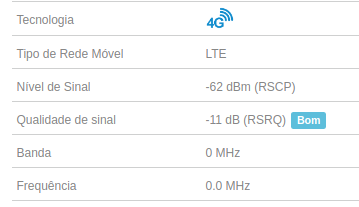 Outro fato interessante, é que em 2600 MHz, o nível de sinal era menor do que em 700MHz. Porém a taxa de Down/Up era muito melhor em 2600 Mhz.