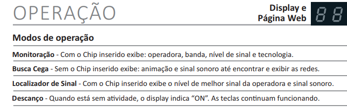 Quanto a comutação da banda de voz para banda LTE e de volta, aguarde alguns minutos após ligar o equipamento, para que o visor fixe a informação -ON-