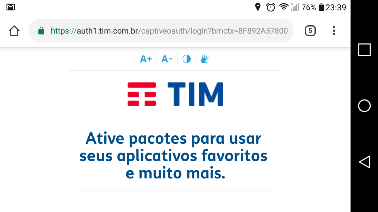 Quando acaba a franquia de dados, a TIM redireciona toda a navegação para https://wcad.tim.com.br