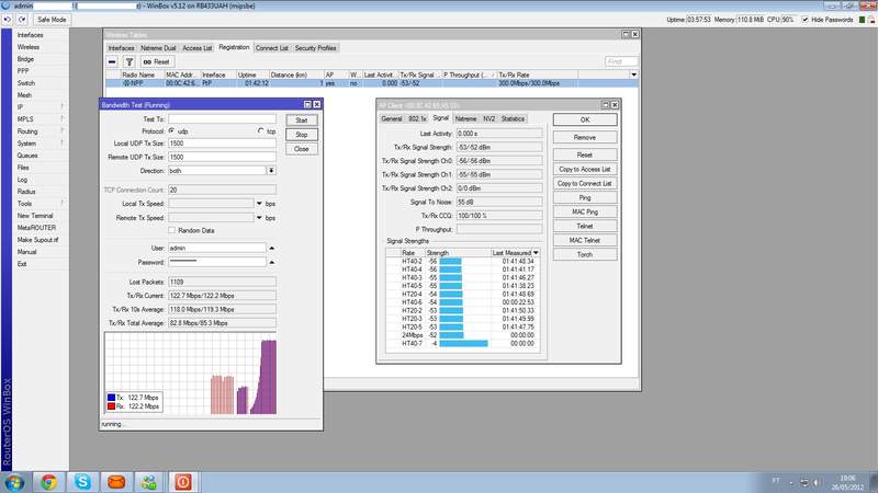 Testado nv2 e r52hn, excelente, latência mínima, troughput alto e conexão estável. Além de tudo o r52hn tem resistência a descarga atmosférica de 10KV o que viabiliza utilizá-lo em ptp. Mudei para nv todos os meus enlaces de longa distancia, a conexão ficou bem mais estável, antes as vezes agente observar uma rapida queda de cerca de 4 segundos, hoje não cai nada, os enlaces em xr5 estão 54/54mbps usando 20mhz de banda, ccq acima de 90% em ambos os lados e o mais impressionante mesmo quando estou fazendo testes de throughput (passando acima de 30 mbps com xr5 em 20mhz de banda) o enalce permanece com latencia baixa, na verdade a latencia nem se altera se vc fazer o teste para a internet, altera um pouco quando se faz o teste para uma das rbs do enlace, mas com certeza é devido ao alto processamento. teste1: RB433AH /R52HN/MIKROTIK 4.16 teste2: Utilizei RB 433/XR5/MIKROTIK 4.16