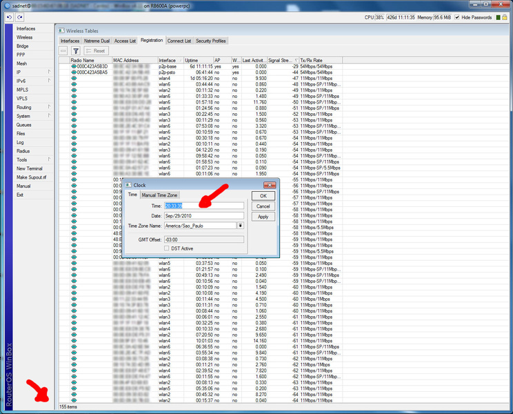 E para ilustrar e "constatar" minhas afirmações sobre mikrotik, estou postanto um print, de umas das minhas Estações Mikrotik, tirada exatamente no momento em que escrevo este post.