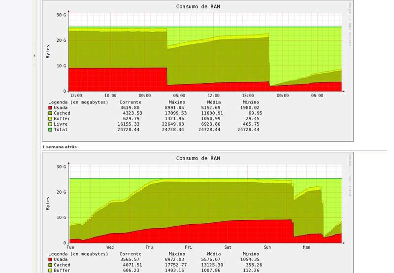 Bom primeiro vou falar da memoria ram disponivel para fazer um cache, como tinha possibilidde estou com 24G de memoria ram ddr3 dentro disso veja o que consumiu Anexo 29571