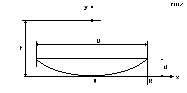 F = Distancia focal D = Diâmetro R = Raio y = x ² / 4 F